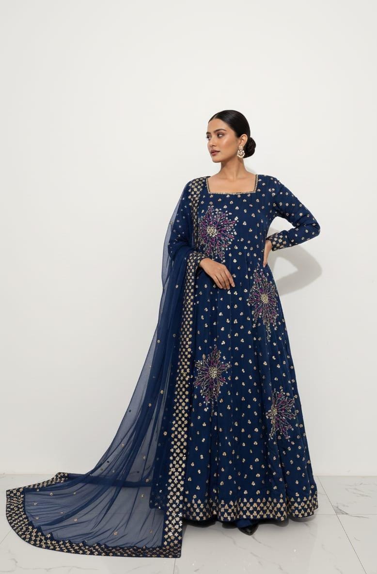 At MILAH by Madiha, we believe in creating timeless designs with premium fabrics, flawless stitching, and detailed handwork. This blue silk maxi is a perfect representation of our dedication to quality and artistry. It is ideal for women who seek luxury, elegance, and a handcrafted masterpiece that stands out with beauty and sophistication.
