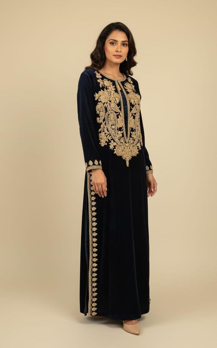 The maxi is fully handmade with intricate Sitara work and Cut Dana embellishments, carefully done on both sides for a perfectly balanced and luxurious look. Every detail is completed with neat and clean finishing, showcasing expert craftsmanship and high attention to quality. The full handwork adds depth, sparkle, and elegance, making this maxi a statement piece for women who love refined fashion.