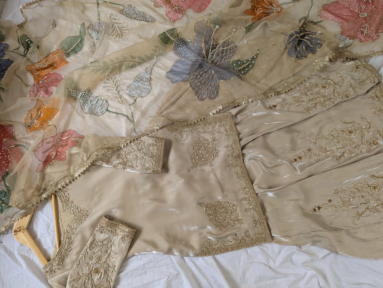 #Spring #SheeshaSilk #OrganzaDupatta #HandEmbroidered #LuxuryPret #DesignerDress #PakistaniFashion #FormalWear #WeddingGuestOutfit #ElegantStyle